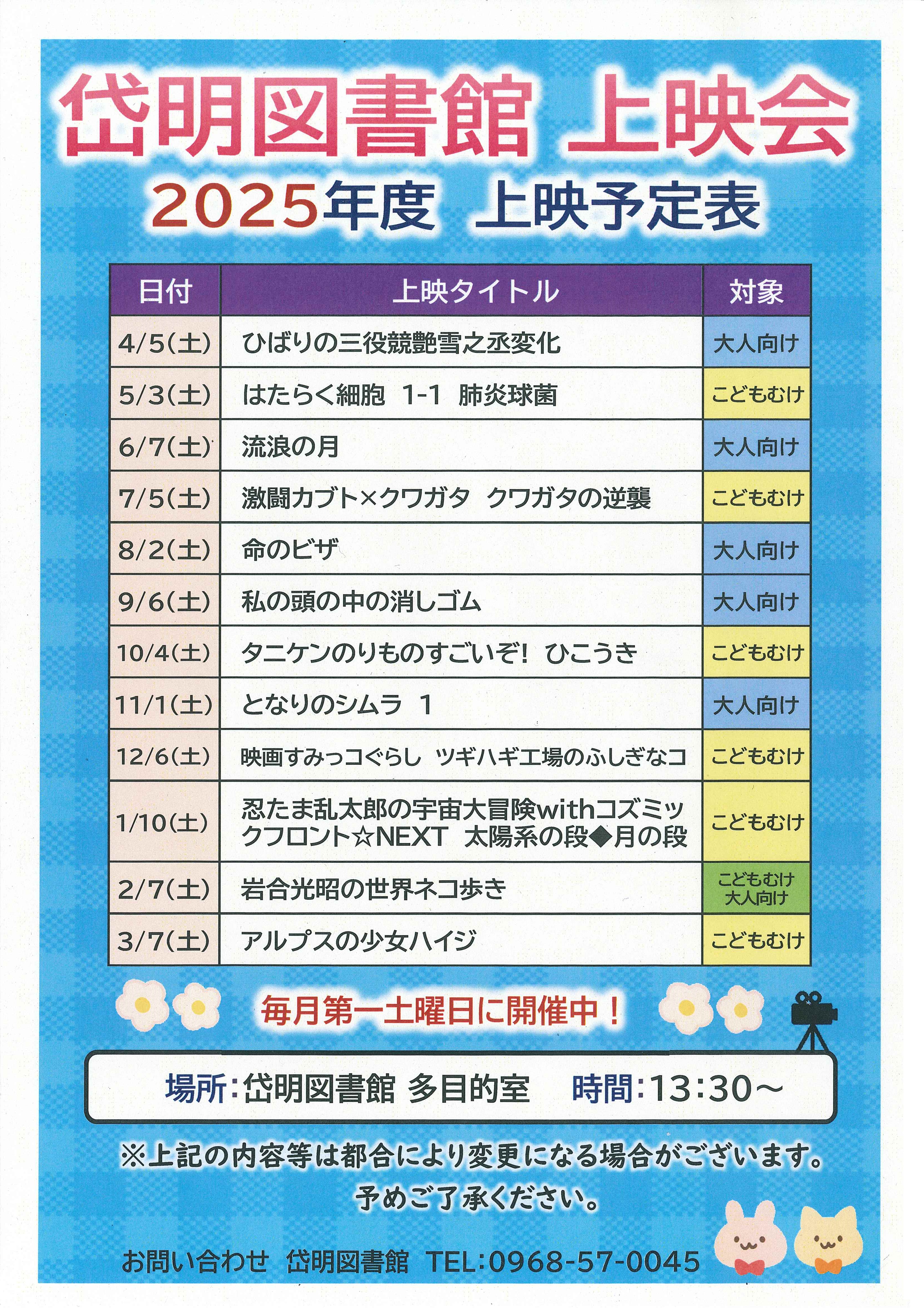 岱明図書館では、毎月第1土曜日に上映会を開催しています。